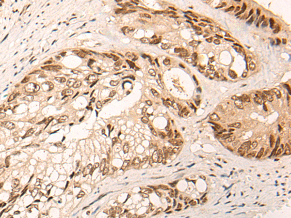 The image is immunohistochemistry of paraffin-embedded Human colorectal cancer tissue using P11535(SLC29A1 Antibody) at dilution 1/25. (Original magnification: ×200) |