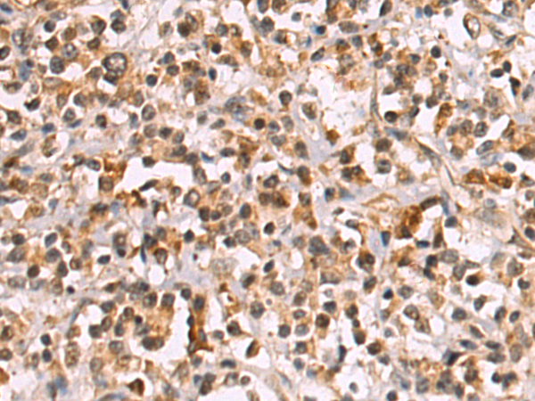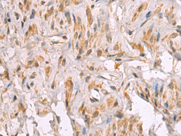 The image is immunohistochemistry of paraffin-embedded Human gastric cancer tissue using P06438(SLC29A2 Antibody) at dilution 1/25. (Original magnification: ×200) |