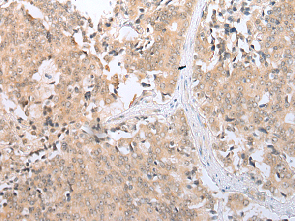 The image is immunohistochemistry of paraffin-embedded Human prostate cancer tissue using P05662(SLC2A6 Antibody) at dilution 1/25. (Original magnification: ×200) |