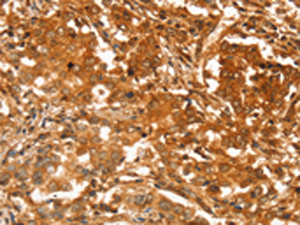 The image is immunohistochemistry of paraffin-embedded Human lung cancer tissue using P12193(SLC41A2 Antibody) at dilution 1/20. (Original magnification: ×200) |