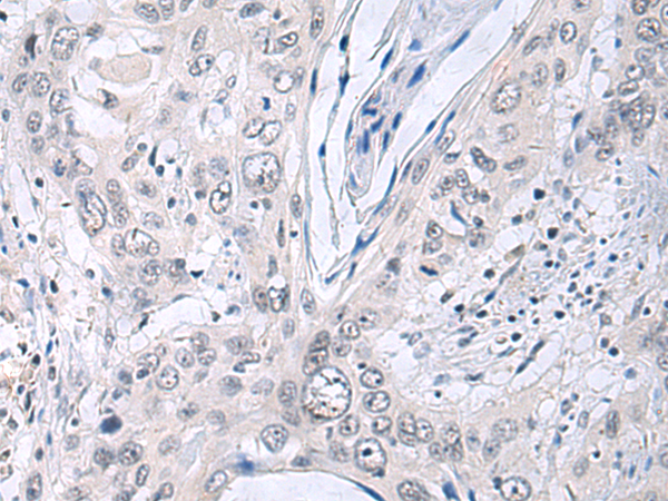 The image is immunohistochemistry of paraffin-embedded Human esophagus cancer tissue using P12604(SLC4A3 Antibody) at dilution 1/50. (Original magnification: ×200) |
