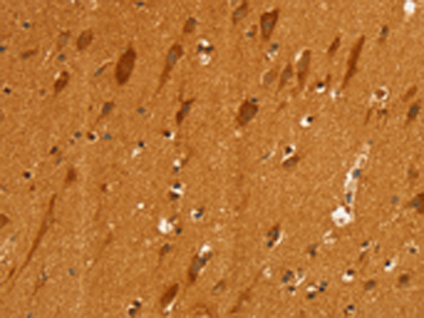 The image is immunohistochemistry of paraffin-embedded Human brain tissue using P12196(SLC4A7 Antibody) at dilution 1/25. (Original magnification: ×200) |