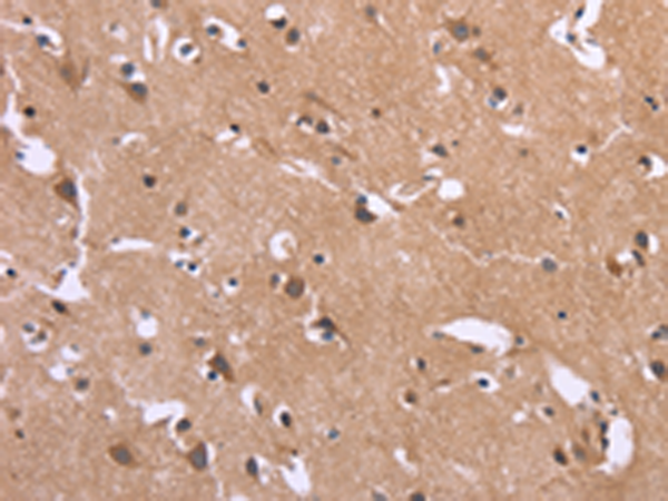 The image is immunohistochemistry of paraffin-embedded Human brain tissue using P11802(SLC52A1 Antibody) at dilution 1/40. (Original magnification: ×200) |
