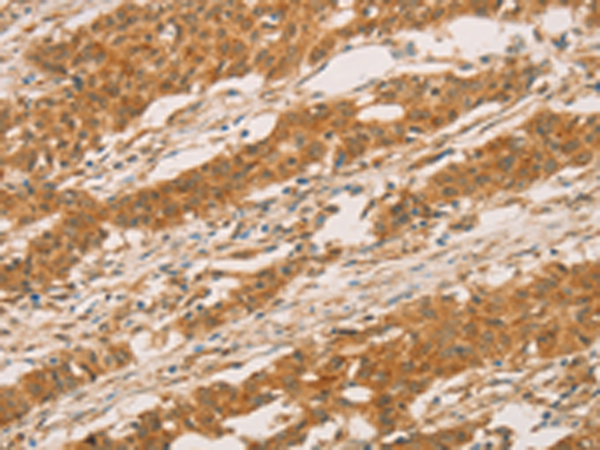 The image is immunohistochemistry of paraffin-embedded Human gastric cancer tissue using P03866(SLC6A3 Antibody) at dilution 1/50. (Original magnification: ×200) |