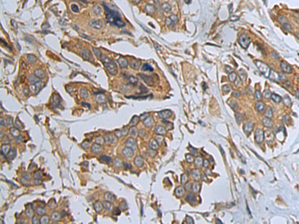 The image is immunohistochemistry of paraffin-embedded Human colorectal cancer tissue using P12693(SLC8A1 Antibody) at dilution 1/30. (Original magnification: ×200) |