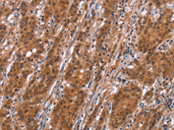 The image is immunohistochemistry of paraffin-embedded Human gastric cancer tissue using P04372(SLC8A2 Antibody) at dilution 1/15. (Original magnification: ×200) |