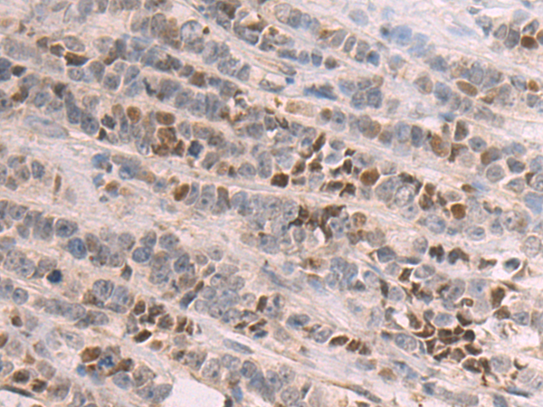 The image is immunohistochemistry of paraffin-embedded Human gastric cancer tissue using P12212(SLTM Antibody) at dilution 1/50. (Original magnification: ×200) |