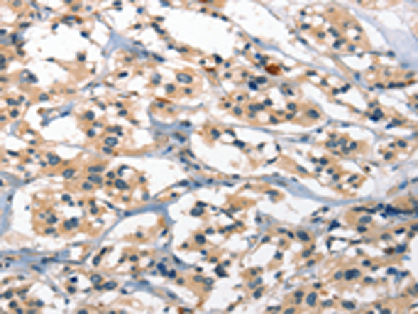 The image is immunohistochemistry of paraffin-embedded Human gasrtic cancer tissue using P11570(SMAD3 Antibody) at dilution 1/30. (Original magnification: ×200) |
