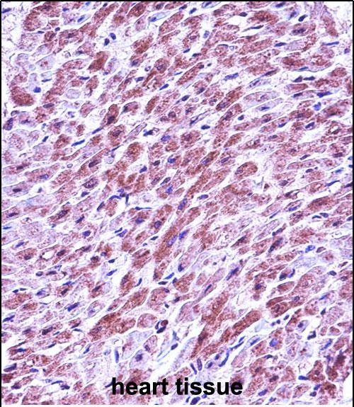 SMAD3 Antibody (Center) (Cat. #P31307)immunohistochemistry analysis in formalin fixed and paraffin embedded human heart tissue followed by peroxidase conjugation of the secondary antibody and DAB staining.This data demonstrates the use of SMAD3 Antibody (Center) for immunohistochemistry. Clinical relevance has not been evaluated. |