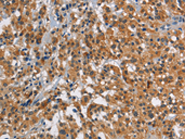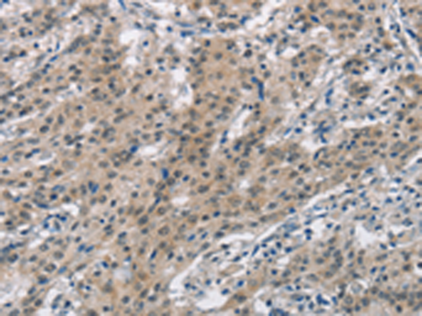 The image is immunohistochemistry of paraffin-embedded Human gastric cancer tissue using P11571(SMAD9 Antibody) at dilution 1/30. (Original magnification: ×200) |
