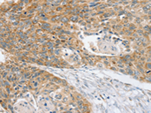 The image is immunohistochemistry of paraffin-embedded Human esophagus cancer tissue using P12216(SMC4 Antibody) at dilution 1/40. (Original magnification: ×200) |