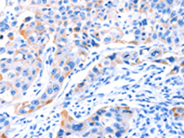 The image is immunohistochemistry of paraffin-embedded Human lung cancer tissue using P04323(SMG8 Antibody) at dilution 1/50. (Original magnification: ×200) |