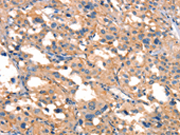 The image is immunohistochemistry of paraffin-embedded Human gastric cancer tissue using P04304(SMURF1 Antibody) at dilution 1/15. (Original magnification: ×200) |