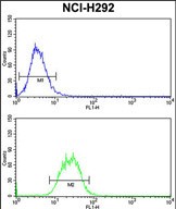 SNRPD2 Antibody (N-term) (Cat. #P30417) flow cytometry analysis of NCI-H292 cells (bottom histogram) compared to a negative control cell (top histogram).FITC-conjugated goat-anti-rabbit secondary antibodies were used for the analysis. |