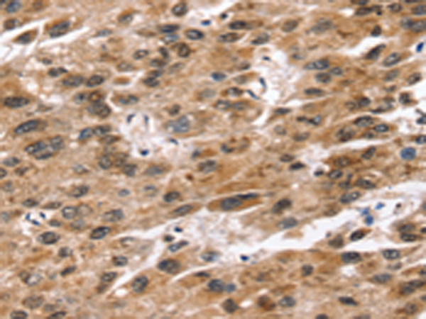 The image is immunohistochemistry of paraffin-embedded Human liver cancer tissue using P05383(SNTA1 Antibody) at dilution 1/20. (Original magnification: ×200) |