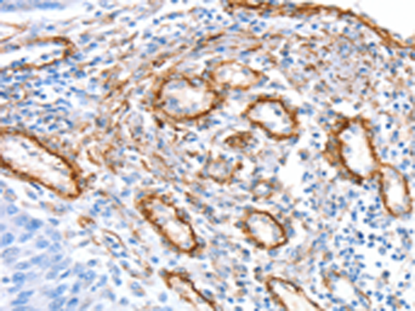 The image is immunohistochemistry of paraffin-embedded Human ovarian cancer tissue using P12229(SNX33 Antibody) at dilution 1/25. (Original magnification: ×200) |