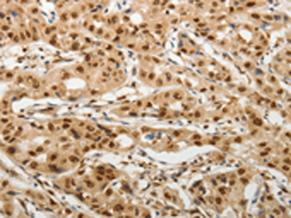 The image is immunohistochemistry of paraffin-embedded Human liver cancer tissue using P04206(SOCS7 Antibody) at dilution 1/30. (Original magnification: ×200) |