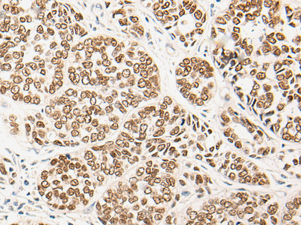 The image is immunohistochemistry of paraffin-embedded Human esophagus cancer tissue using P11539(SOX9 Antibody) at dilution 1/25. (Original magnification: ×200) |