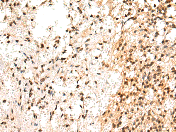 The image is immunohistochemistry of paraffin-embedded Human prostate cancer tissue using P03556(SP110 Antibody) at dilution 1/85. (Original magnification: ×200) |