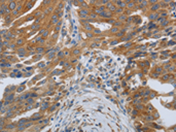 The image is immunohistochemistry of paraffin-embedded Human lung cancer tissue using P11125(SPAG1 Antibody) at dilution 1/25. (Original magnification: ×200) |