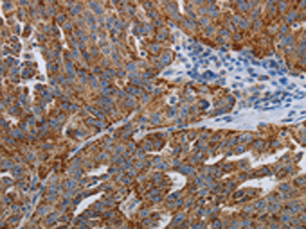 The image is immunohistochemistry of paraffin-embedded Human ovarian cancer tissue using P04208(SPAG1 Antibody) at dilution 1/25. (Original magnification: ×200) |