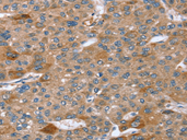 The image is immunohistochemistry of paraffin-embedded Human liver cancer tissue using P12237(SPATA5L1 Antibody) at dilution 1/20. (Original magnification: ×200) |
