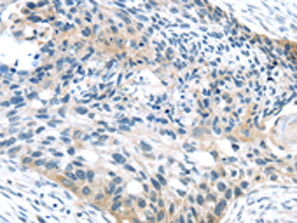 The image is immunohistochemistry of paraffin-embedded Human esophagus cancer tissue using P12240(SPDL1 Antibody) at dilution 1/35. (Original magnification: ×200) |