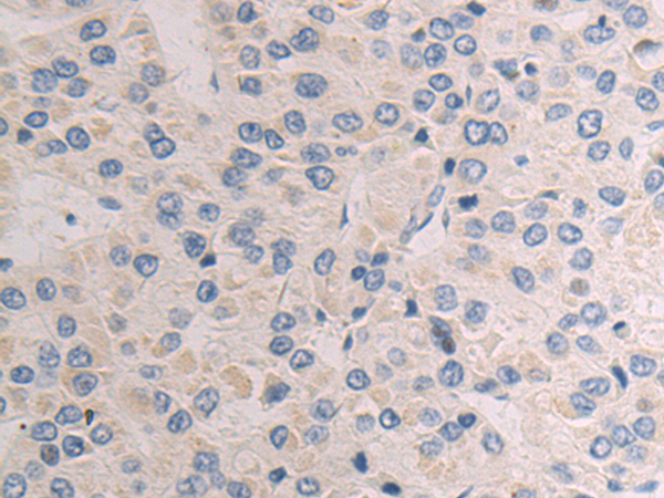 The image is immunohistochemistry of paraffin-embedded Human liver cancer tissue using P13802(SPINK1 Antibody) at dilution 1/50. (Original magnification: ×200) |