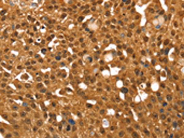 The image is immunohistochemistry of paraffin-embedded Human liver cancer tissue using P05359(SRGAP1 Antibody) at dilution 1/25. (Original magnification: ×200) |