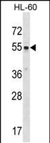 SRMS Antibody (P471) (Cat. #P30040) western blot analysis in HL-60 cell line lysates (35ug/lane).This demonstrates the SRMS antibody detected the SRMS protein (arrow). |