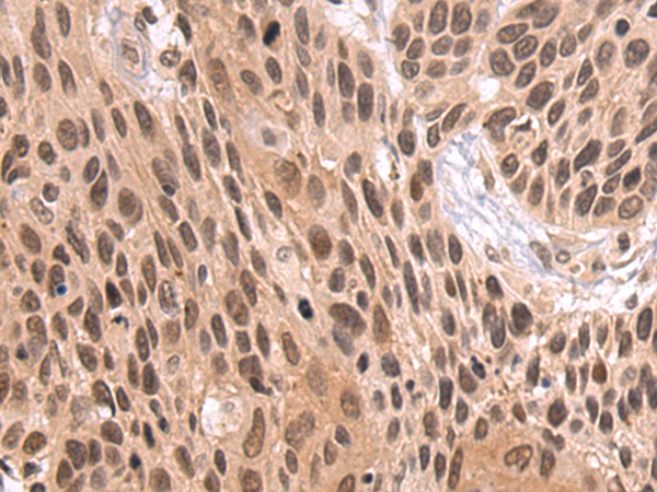 The image is immunohistochemistry of paraffin-embedded Human esophagus cancer tissue using P13783(SRSF8 Antibody) at dilution 1/50. (Original magnification: ×200) |