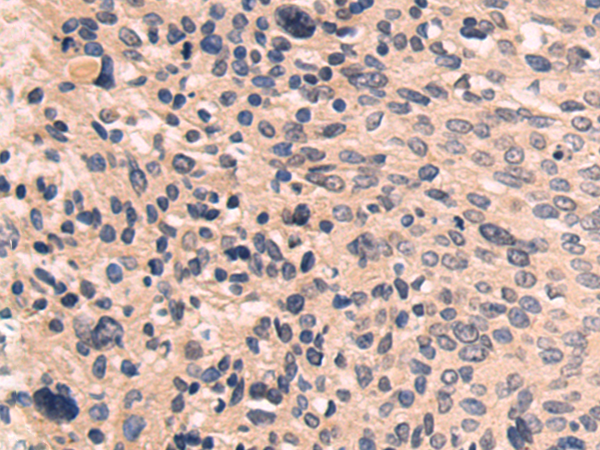 The image is immunohistochemistry of paraffin-embedded Human cervical cancer tissue using P12802(SST Antibody) at dilution 1/50. (Original magnification: ×200) |