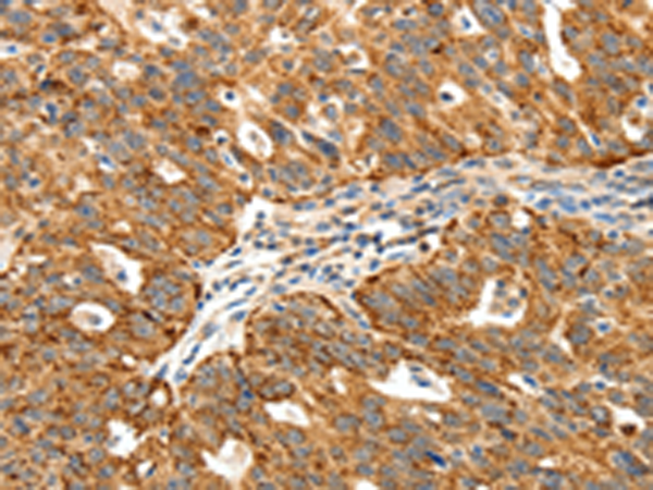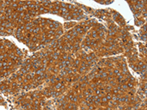 The image is immunohistochemistry of paraffin-embedded Human liver cancer tissue using P11362(SSTR1 Antibody) at dilution 1/40. (Original magnification: ×200) |