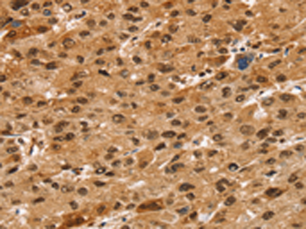 The image is immunohistochemistry of paraffin-embedded Human liver cancer tissue using P05364(SSX5 Antibody) at dilution 1/20. (Original magnification: ×200) |