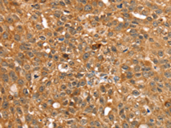 The image is immunohistochemistry of paraffin-embedded Human liver cancer tissue using P05367(STARD5 Antibody) at dilution 1/25. (Original magnification: ×200) |