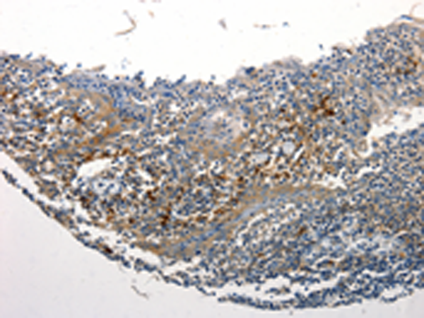 The image is immunohistochemistry of paraffin-embedded Human tonsil tissue using P07002(STAT5B Antibody) at dilution 1/25. (Original magnification: ×200) |
