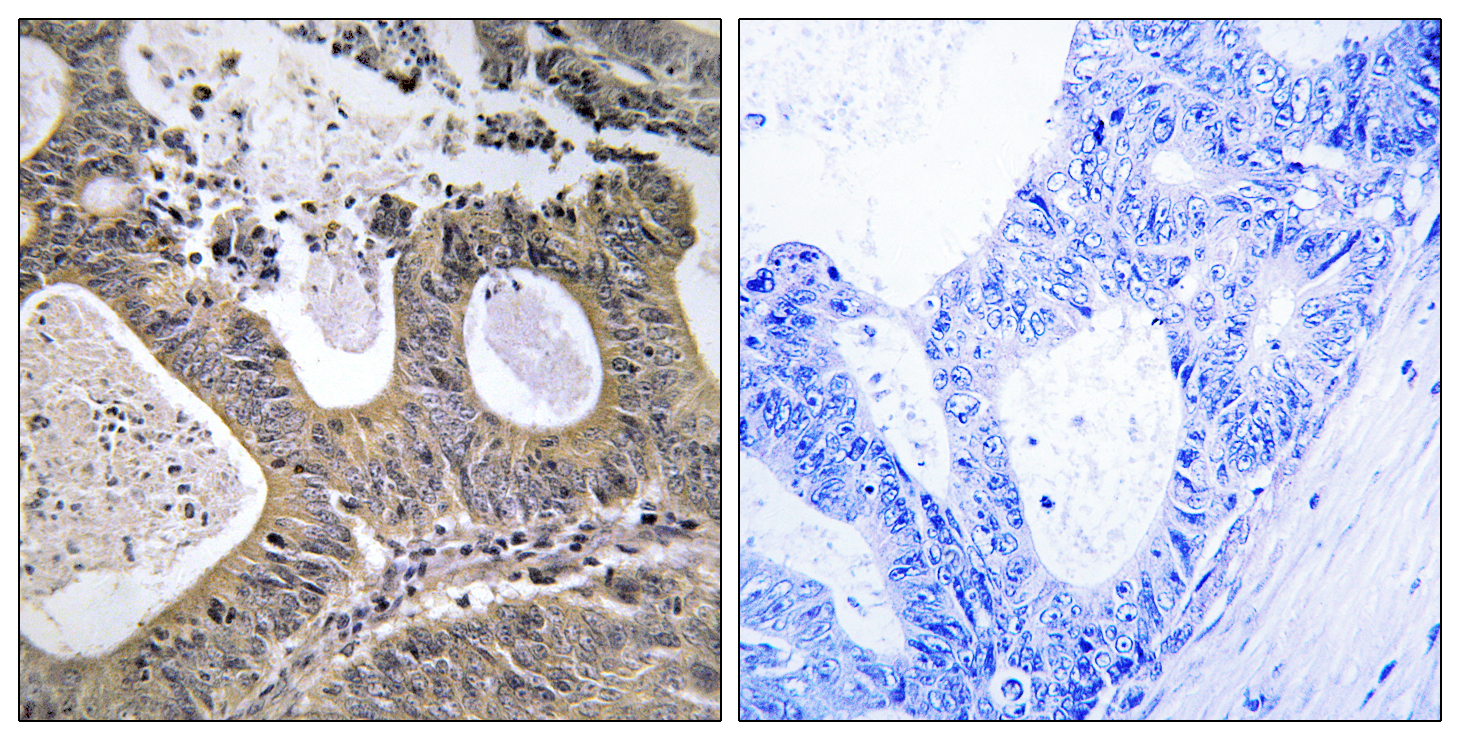 Immunohistochemical analysis of paraffin-embedded Human tonsils using STEAP2 antibody. Sample with blocking peptide on the right.High-pressure and temperature Sodium Citrate pH 6.0 was used for antigen retrieval. |