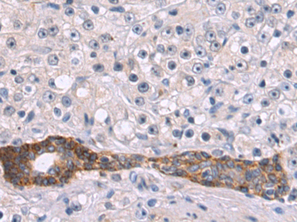 The image is immunohistochemistry of paraffin-embedded Human prostate cancer tissue using P13777(STEAP3 Antibody) at dilution 1/50. (Original magnification: ×200) |