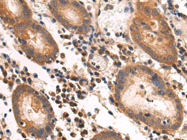 The image is immunohistochemistry of paraffin-embedded Human gastric cancer tissue using P03662(STUB1 Antibody) at dilution 1/75. (Original magnification: ×200) |