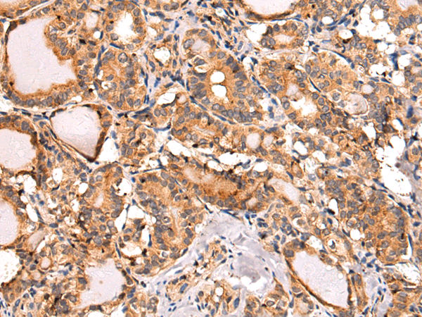 The image is immunohistochemistry of paraffin-embedded Human thyroid cancer tissue using P03531(SUCLA2 Antibody) at dilution 1/85. (Original magnification: ×200) |