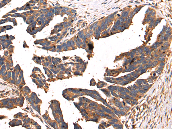 The image is immunohistochemistry of paraffin-embedded Human colorectal cancer tissue using P03531(SUCLA2 Antibody) at dilution 1/85. (Original magnification: ×200) |