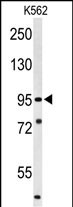 Western blot analysis of SUPV3L1 Antibody (N-term) (Cat. #P32865) in K562 cell line lysates (35ug/lane). SUPV3L1 (arrow) was detected using the purified Pab. |