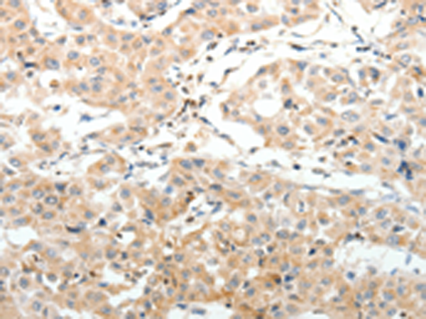 The image is immunohistochemistry of paraffin-embedded Human liver cancer tissue using P04480(SV2A Antibody) at dilution 1/25. (Original magnification: ×200) |