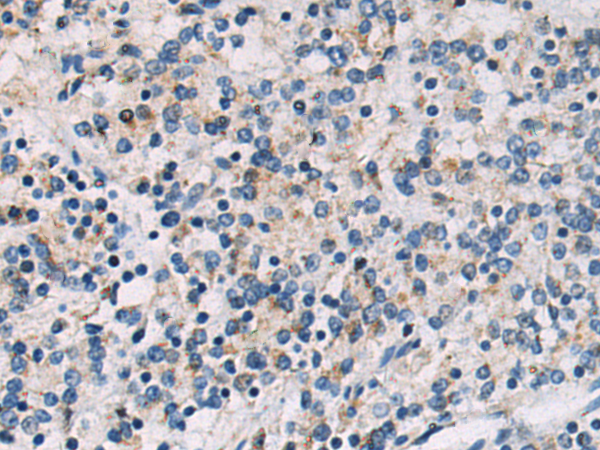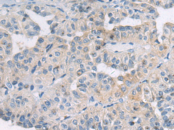 The image is immunohistochemistry of paraffin-embedded Human gastric cancer tissue using P05258(SYCP3 Antibody) at dilution 1/50. (Original magnification: ×200) |