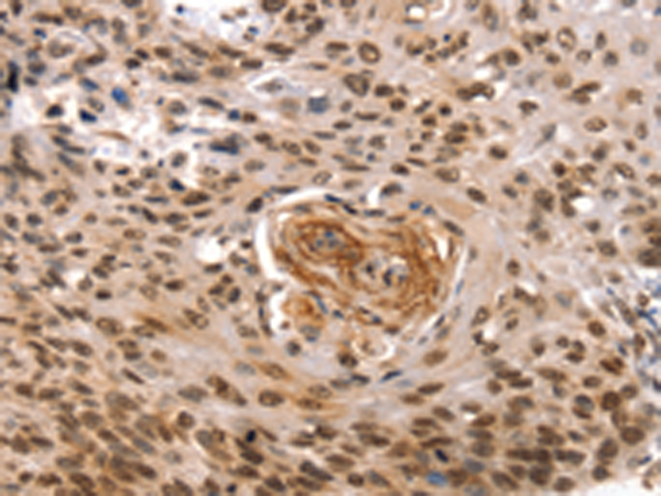 The image is immunohistochemistry of paraffin-embedded Human esophagus cancer tissue using P12269(TAF10 Antibody) at dilution 1/40. (Original magnification: ×200) |