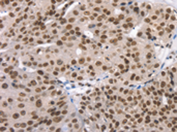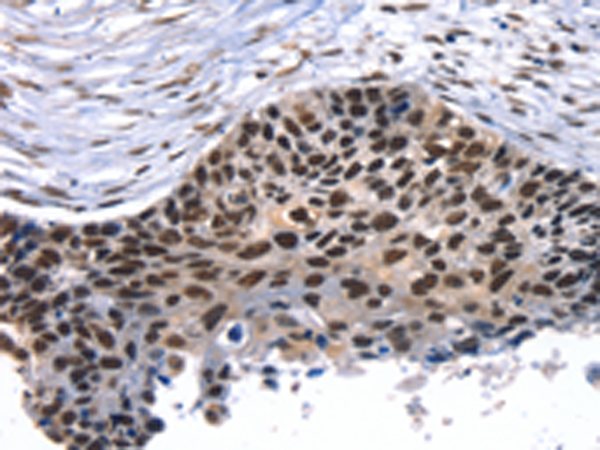 The image is immunohistochemistry of paraffin-embedded Human esophagus cancer tissue using P05389(TAF15 Antibody) at dilution 1/35. (Original magnification: ×200) |