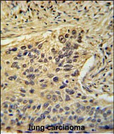TAF2 Antibody (C-Term) (Cat. #P32619) immunohistochemistry analysis in formalin fixed and paraffin embedded human lung carcinoma followed by peroxidase conjugation of the secondary antibody and DAB staining. This data demonstrates the use of the TAF2 Antibody (C-Term) for immunohistochemistry. Clinical relevance has not been evaluated. |