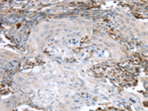 The image is immunohistochemistry of paraffin-embedded Human cervical cancer tissue using P12348(TBXA2R Antibody) at dilution 1/40. (Original magnification: ×200) |