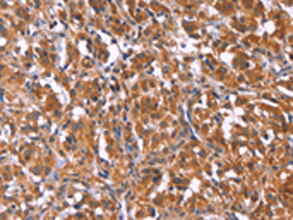 The image is immunohistochemistry of paraffin-embedded Human gasrtic cancer tissue using P04860(TDP2 Antibody) at dilution 1/40. (Original magnification: ×200) |