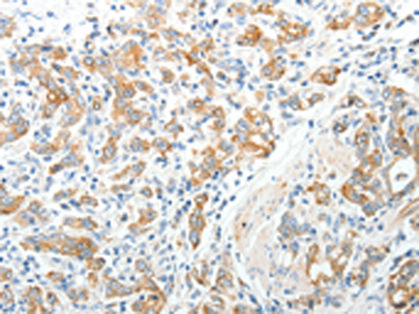 The image is immunohistochemistry of paraffin-embedded Human gastric cancer tissue using P11381(TEP1 Antibody) at dilution 1/40. (Original magnification: ×200) |